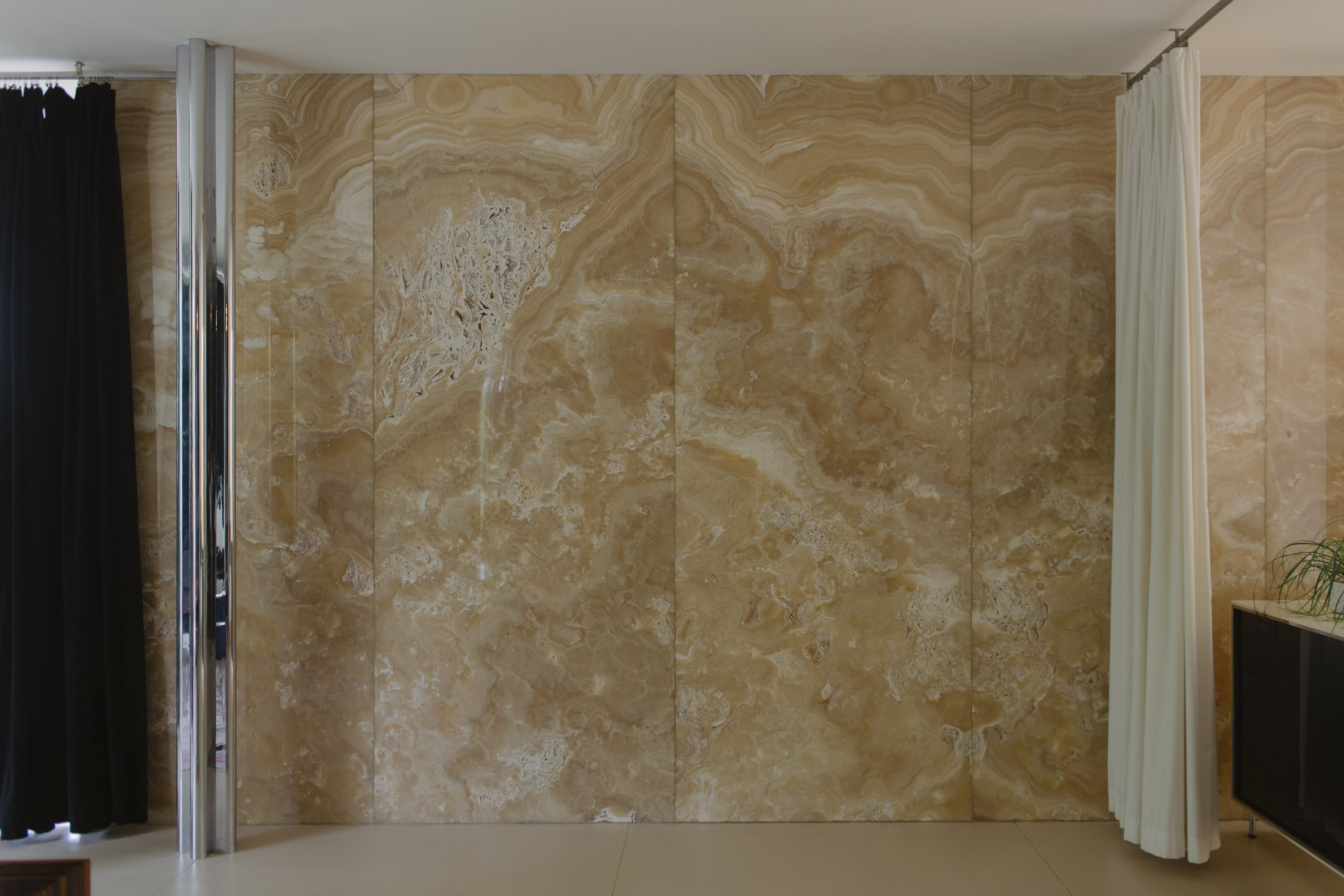 There are two dominants in Vila Tugendhat. The Onyx wall, made from a honey-coloured, yellow rock with white veins mined from the Atlas Mountains in North Africa, one which shines when sun rays hit it at the right angle, and the Makassar ebony curved wall. Together they can be viewed as forming letters D and I. And that was a sign for Dominika and Ivo that this architectural gem is meant to be the place where they get married.
